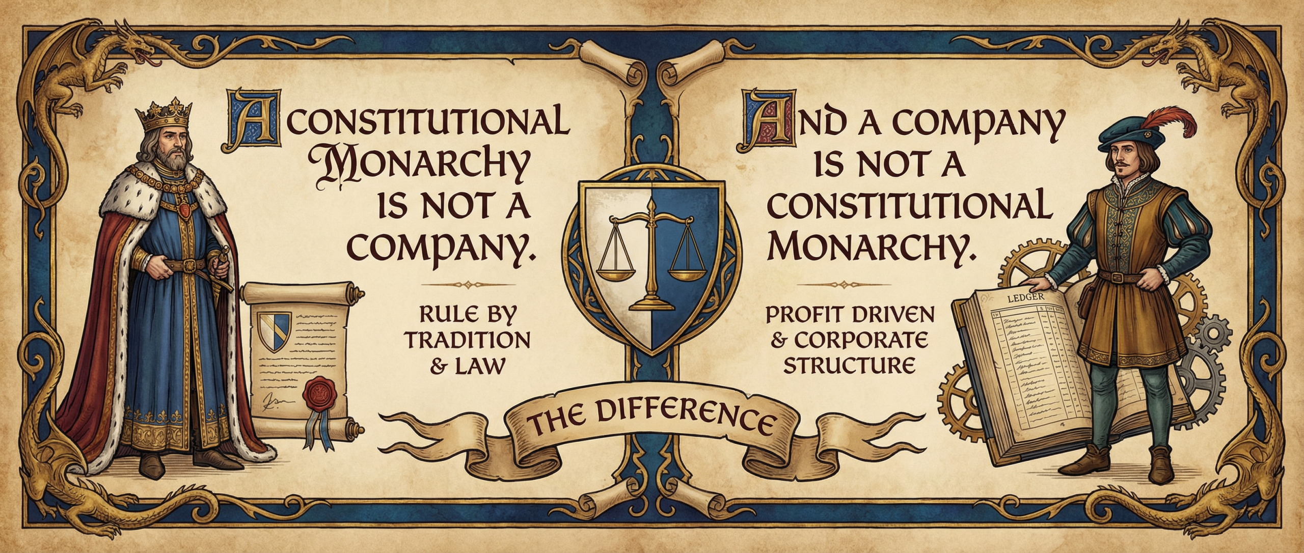 Een Constitutionele Monarchie is géén bedrijf en een bedrijf is géén Constitutionele Monarchie.